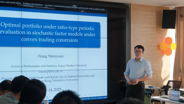 2025年5月14日下午,福建师范大学王文元教授应邀来我校开展以“Optimal portfolio under ratio-type periodic evaluation in stochastic factor models under convex trading constraints”为主题的学术讲座。本次讲座在综合楼644会议室举行,由统计与数学学院王伟刚教授主持。