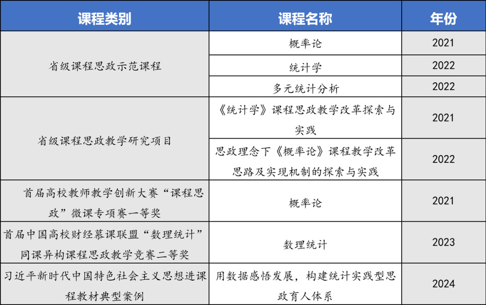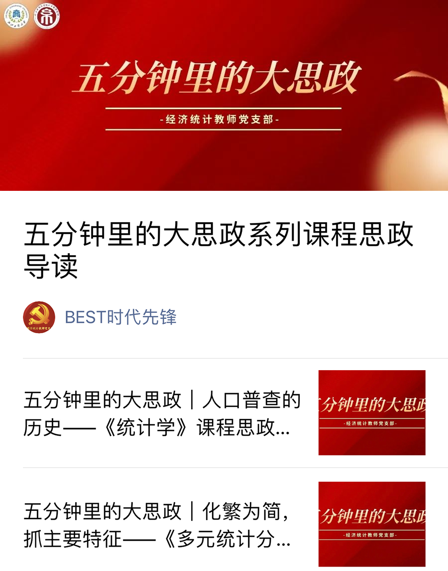 思政深度融入课堂,构建课程思政新体系。澳门足球赔率团队始终坚守“为党育人、为国育才”的初心使命,紧紧围绕立德树人根本任务,构建思政教育与专业教育交互、产教互融、科教互促的“三交互”育人体系,培育德智体美劳全面发展的新时代卓越统计人才。强化课程思政和思政课程建设,实施专业核心课程思政导读行动,《统计学》《概率论》《多元统计分析》等三门课程获批浙江省课程思政示范课程,教师团队多位教师参与省级课程思政微课比赛获奖,经济统计系获批浙江省课程思政示范基层教学组织(2023)。