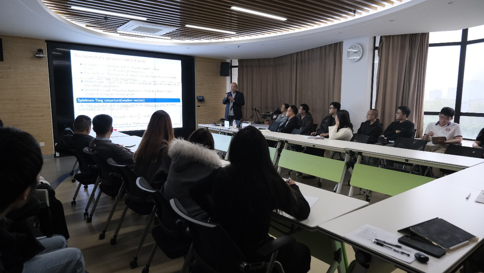 2025年10月30日下午,山东大学王汉超教授应邀开展以“Inhomogeneous symmetric random matrix: eigenvalues and eigenvectors”为主题的学术讲座。本次讲座在综合楼644会议室举行,由统计与数据科学学院张荣茂教授主持。