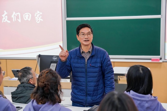 班主任郭仁民老师的发言更是将现场气氛推向高潮。他深情回顾了与同学们共度的青春岁月,说起课堂上专注的眼神、校园里奋进的身影,往事历历在目,仿佛昨日重现。看到如今在各自领域卓有建树的同学们,郭老师眼中闪烁着自豪的光芒。他勉励大家:“无论走多远,都要常怀求是创新之心,坚守诚信立身之本,为社会贡献更多统院人的智慧与力量!”